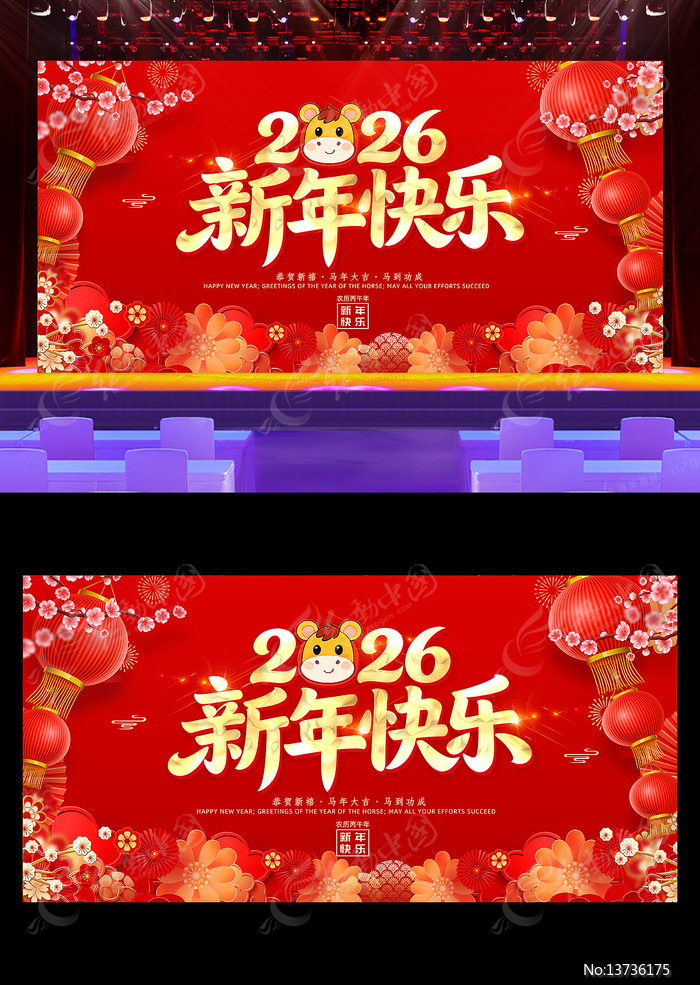 当前位置:设计网站>平面广告>展板>节日节气>马年2026元旦新年快乐晚会舞台背景展板马年2026元旦新年快乐晚会舞台背景展板