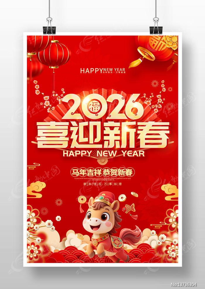红动中国提供原创2026马年喜迎新春新年海报下载,作品以开工大吉为主题而设计,可作为2026马年海报,2026年海报,2026马年,2026年会,2026元旦等主题图片使用,2026马年喜迎新春新年海报,编号13736304,格式PSD,尺寸300x450毫米,大小28.8 MB,欢迎会员进行下载。