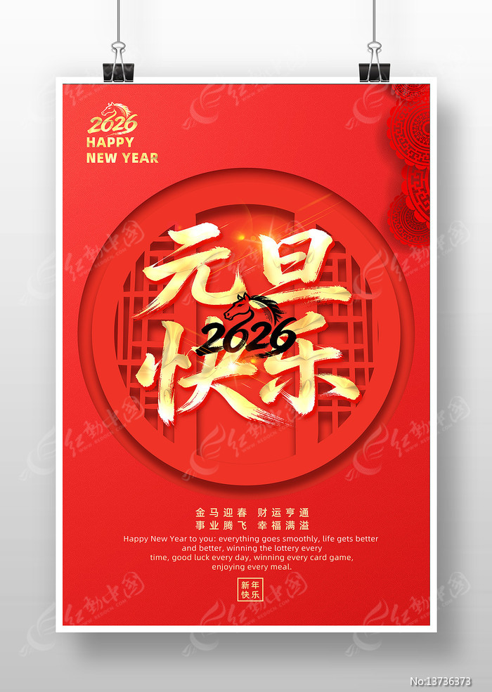 红动中国提供原创元旦快乐2026年马年节日海报下载,作品以元旦节为主题而设计,可作为2026年元旦节,马年元旦海报,元旦广告设计,2026年元旦,元旦节海报等主题图片使用,元旦快乐2026年马年节日海报,编号13736373,格式PSD,尺寸300x450毫米,大小37.75 MB,欢迎会员进行下载。