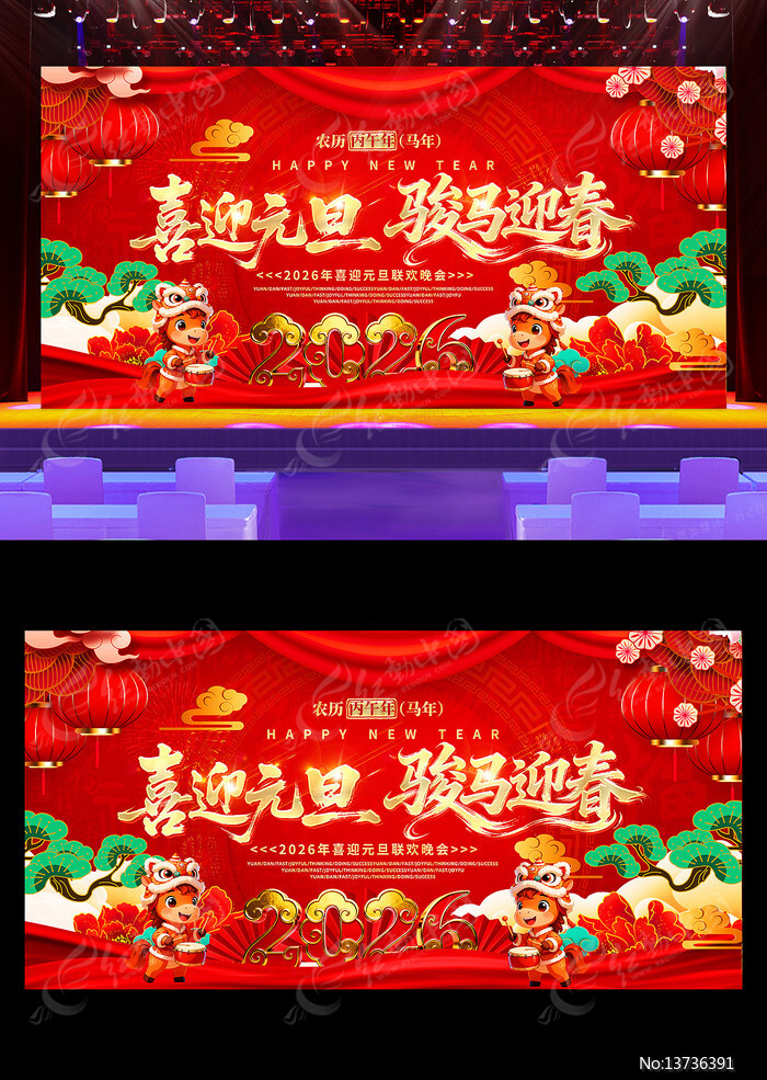 红动中国提供原创喜迎元旦骏马春2026元旦晚会背景展板下载,作品以元旦年会背景为主题而设计,可作为2026跨年晚会,元旦年会背景,马年背景,马年大吉,马年晚会等主题图片使用,喜迎元旦骏马春2026元旦晚会背景展板,编号13736391,格式PSD,尺寸500x250毫米,大小118.91 MB,欢迎会员进行下载。