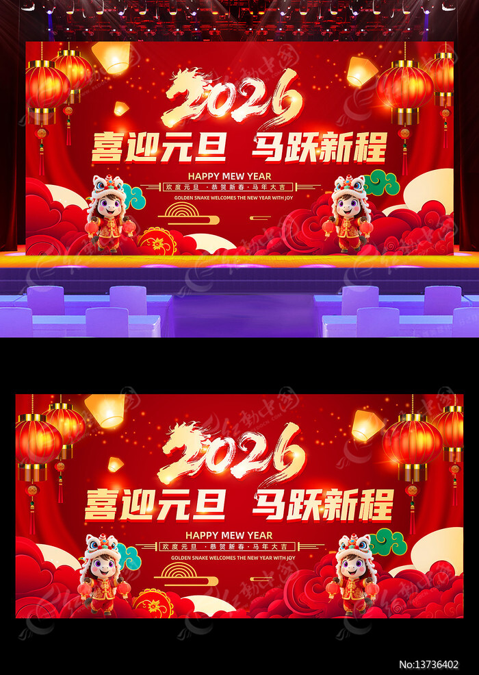 红动中国提供原创喜迎元旦马跃新程2026年元旦晚会背景下载,作品以元旦年会背景为主题而设计,可作为2026跨年晚会,元旦年会背景,马年背景,马年大吉,马年晚会等主题图片使用,喜迎元旦马跃新程2026年元旦晚会背景,编号13736402,格式PSD,尺寸500x250毫米,大小124.85 MB,欢迎会员进行下载。