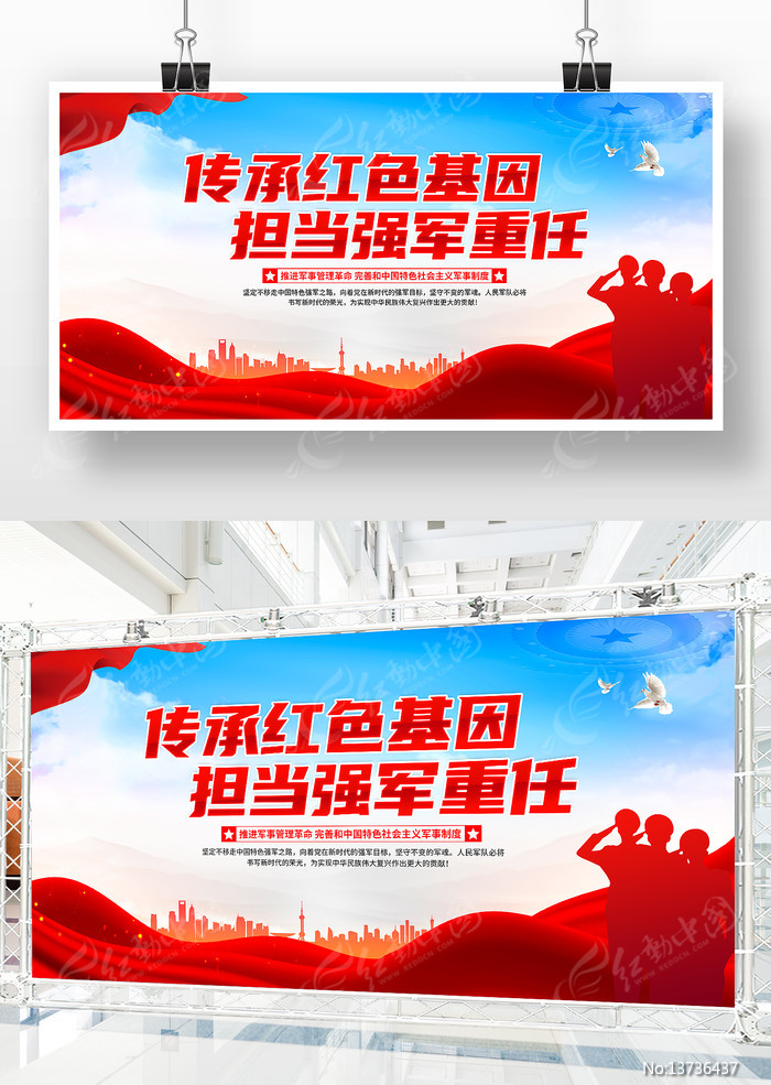 当前位置:设计网站>平面广告>展板>党建展板>传承红色基因担当强军重任部队军队标语展板传承红色基因担当强军重任部队军队标语展板