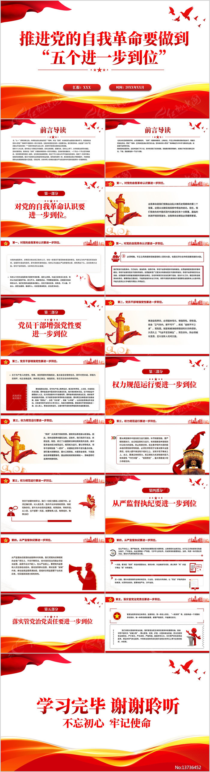 红动中国提供原创推进党的自我革命要做到五个进一步到位下载,作品以反腐倡廉为主题而设计,可作为全面从严治党PPT,全面从严治党,反腐倡廉PPT,微党课ppt,从严治党等主题PPT使用,推进党的自我革命要做到五个进一步到位编号13736452,格式pptx,大小36.58 MB,欢迎会员进行下载。