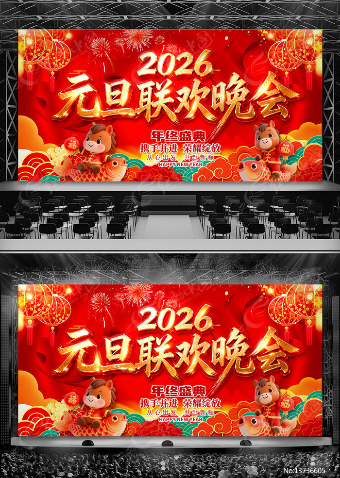 红动中国提供原创红色2026年元旦联欢晚会舞台背景展板下载,作品以元旦联欢晚会为主题而设计,可作为元旦联欢晚会,元旦晚会背景,元旦舞台背景,2026元旦,2026展板等主题图片使用,红色2026年元旦联欢晚会舞台背景展板,编号13736605,格式PSD,尺寸300x600毫米,大小141.26 MB,欢迎会员进行下载。