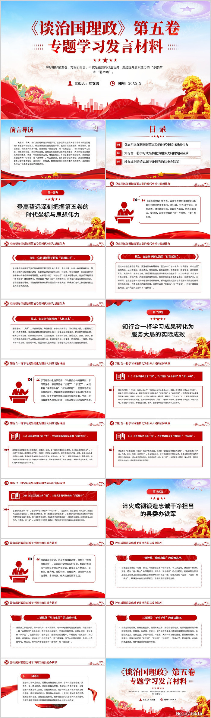 红动中国提供原创谈治国理政第五卷专题学习发言材料PPT下载,作品以谈治国理政为主题而设计,可作为谈治国理政,发言材料,时代坐标,实际成效,思想伟力等主题PPT使用,谈治国理政第五卷专题学习发言材料PPT编号13736616,格式pptx,大小4.75 MB,欢迎会员进行下载。