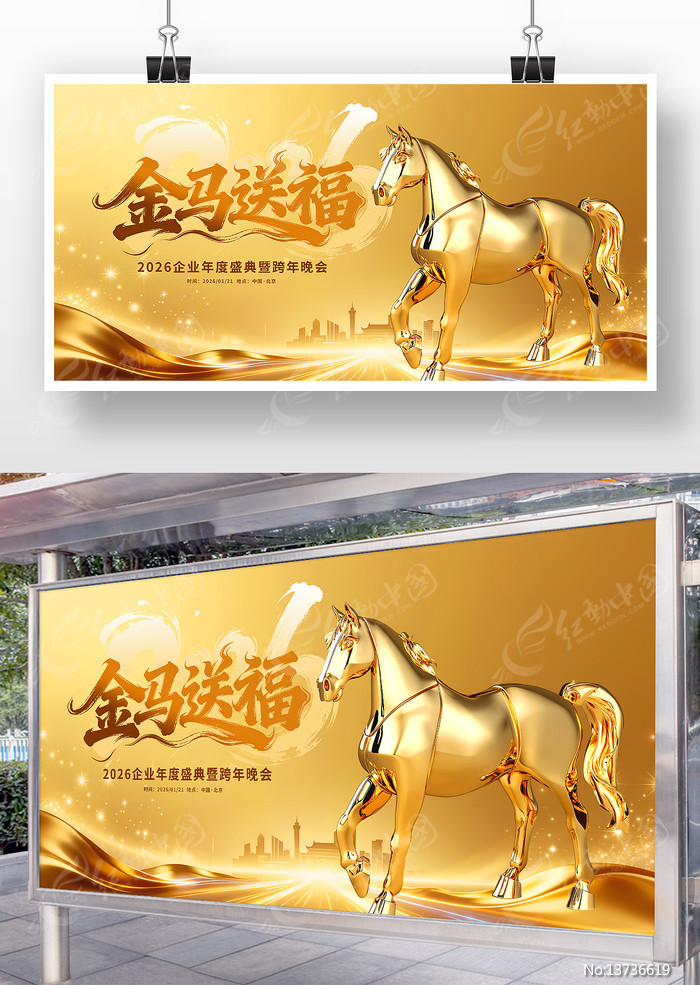 当前位置:设计网站>平面广告>展板>节日节气>金马送福2026年马年晚会背景金马送福2026年马年晚会背景