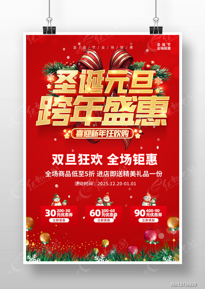 红动中国提供原创红色圣诞元旦跨年盛惠促销海报下载,作品以圣诞节为主题而设计,可作为圣诞节海报,红色促销,年终钜惠,圣诞促销,圣诞吊旗等主题图片使用,红色圣诞元旦跨年盛惠促销海报,编号13736829,格式PSD,尺寸900x600毫米,大小105.74 MB,欢迎会员进行下载。