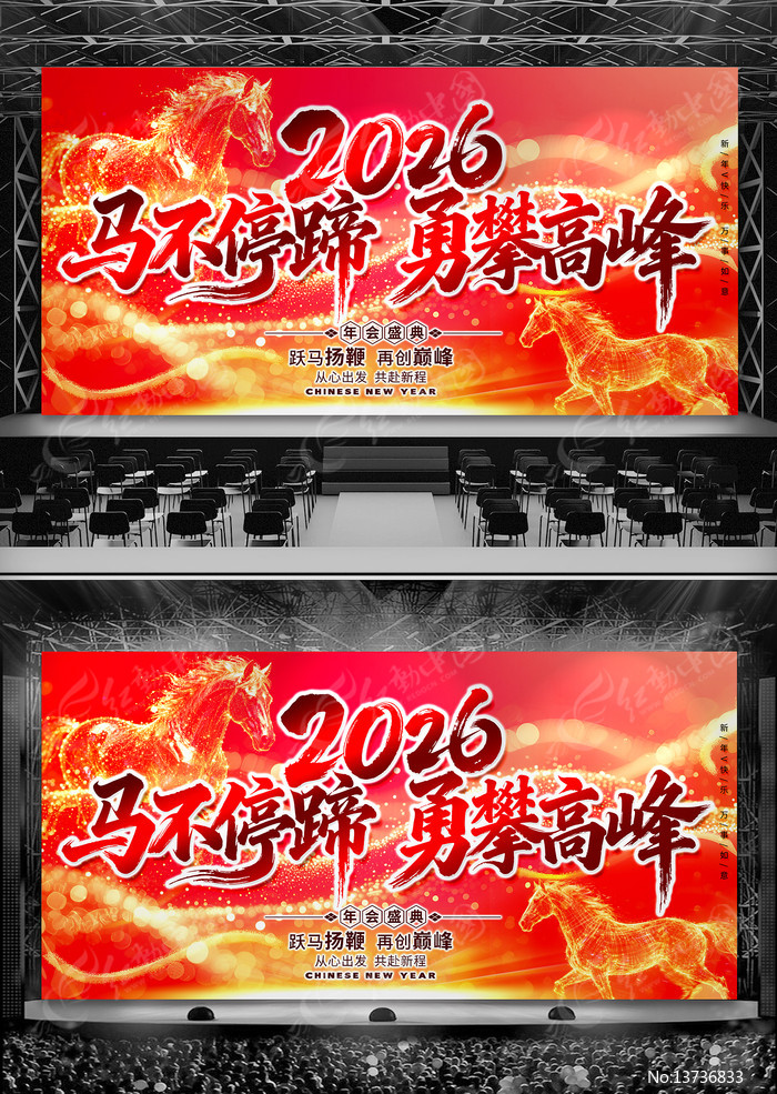 红动中国提供原创炫酷2026马年晚会年会舞台背景展板设计下载,作品以颁奖典礼晚会为主题而设计,可作为颁奖典礼晚会,公司答谢会,新春联谊会,公司年会,马年年会等主题图片使用,炫酷2026马年晚会年会舞台背景展板设计,编号13736833,格式PSD,尺寸300x600毫米,大小155.87 MB,欢迎会员进行下载。