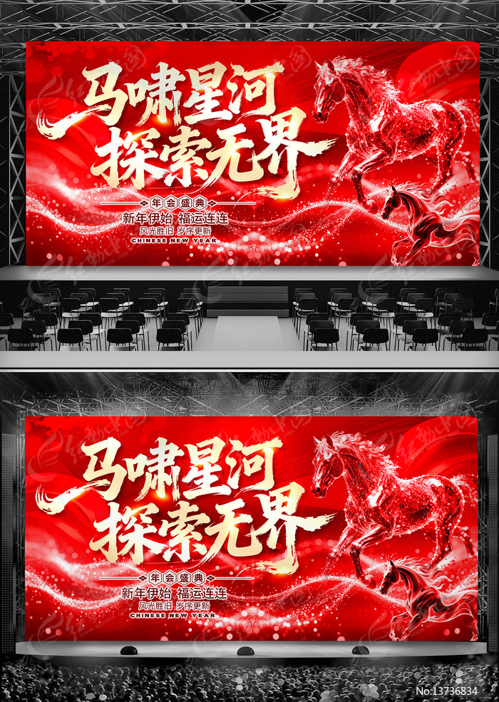 红动中国提供原创震撼大气2026年会马年年会舞台背景图片下载,作品以新春联谊会为主题而设计,可作为颁奖典礼晚会,公司答谢会,新春联谊会,公司年会,马年年会等主题图片使用,震撼大气2026年会马年年会舞台背景图片,编号13736834,格式PSD,尺寸300x600毫米,大小208.83 MB,欢迎会员进行下载。