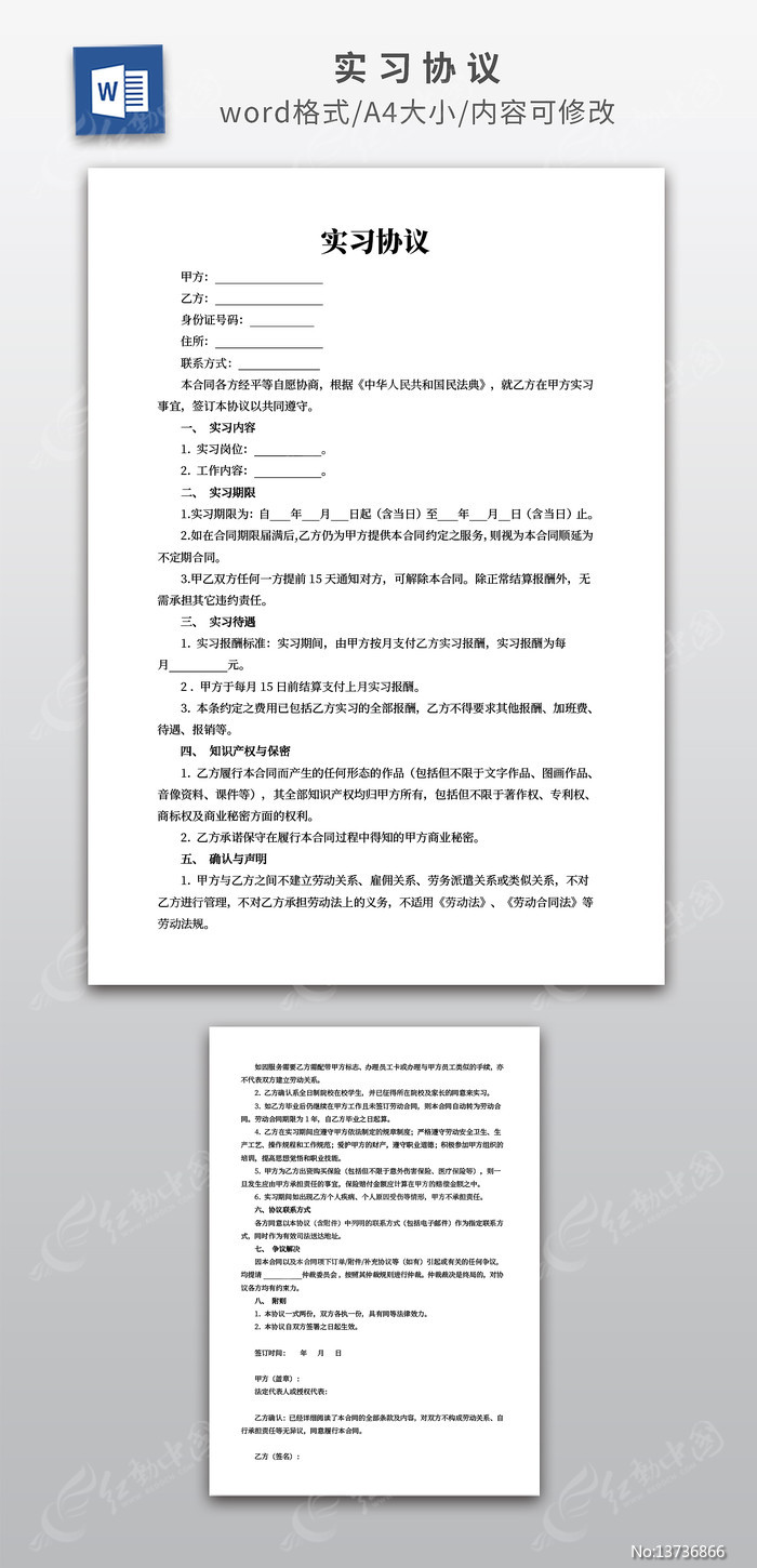 红动中国提供原创实习协议下载,该作品还可作为实习协议等范文模板使用,实习协议编号13736866,大小,欢迎会员进行下载。