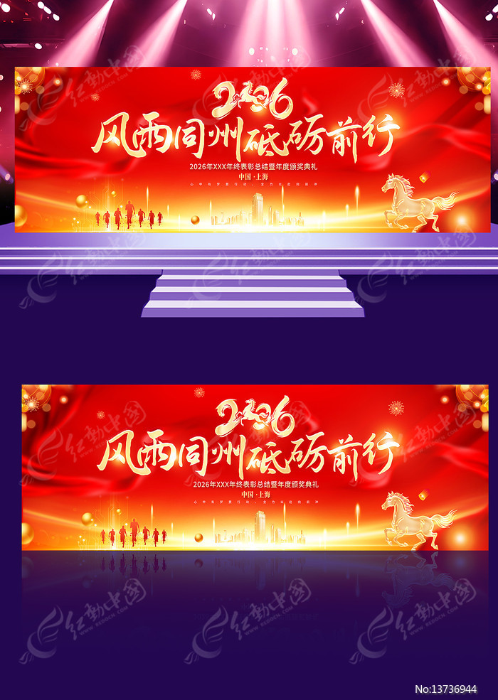 当前位置:设计网站>平面广告>展板>节日节气>2026马年砥砺前行年会颁奖舞台背景展板2026马年砥砺前行年会颁奖舞台背景展板