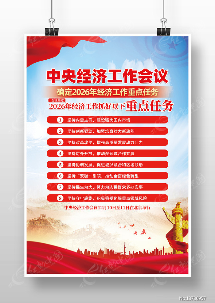 红动中国提供原创2026年中央经济工作会议党建海报挂画下载,作品以工作会议精神为主题而设计,可作为工作会议精神,经济工作会议,中央经济工作,2025年中央,部署2026年等主题图片使用,2026年中央经济工作会议党建海报挂画,编号13736957,格式PSD,尺寸450x300毫米,大小89.85 MB,欢迎会员进行下载。