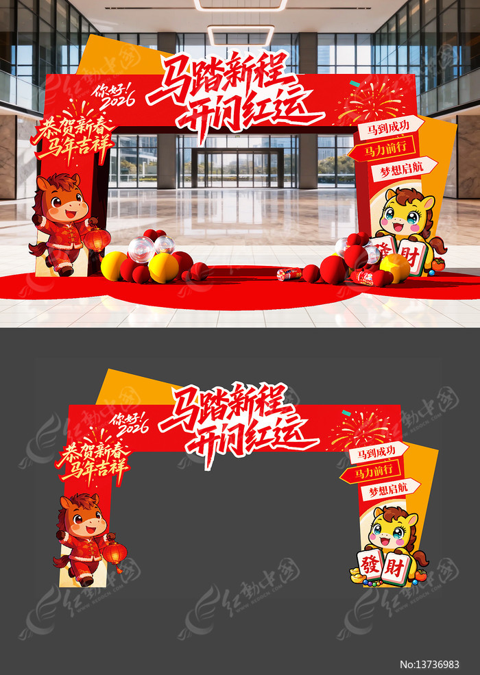 红动中国提供原创原创开门红新年拱门美陈下载,作品以春节为主题而设计,可作为春节拱门,春节美陈,马年拱门,年会拱门,年货大街等主题图片使用,原创开门红新年拱门美陈,编号13736983,格式AI,尺寸500x200毫米,大小85.16 MB,欢迎会员进行下载。