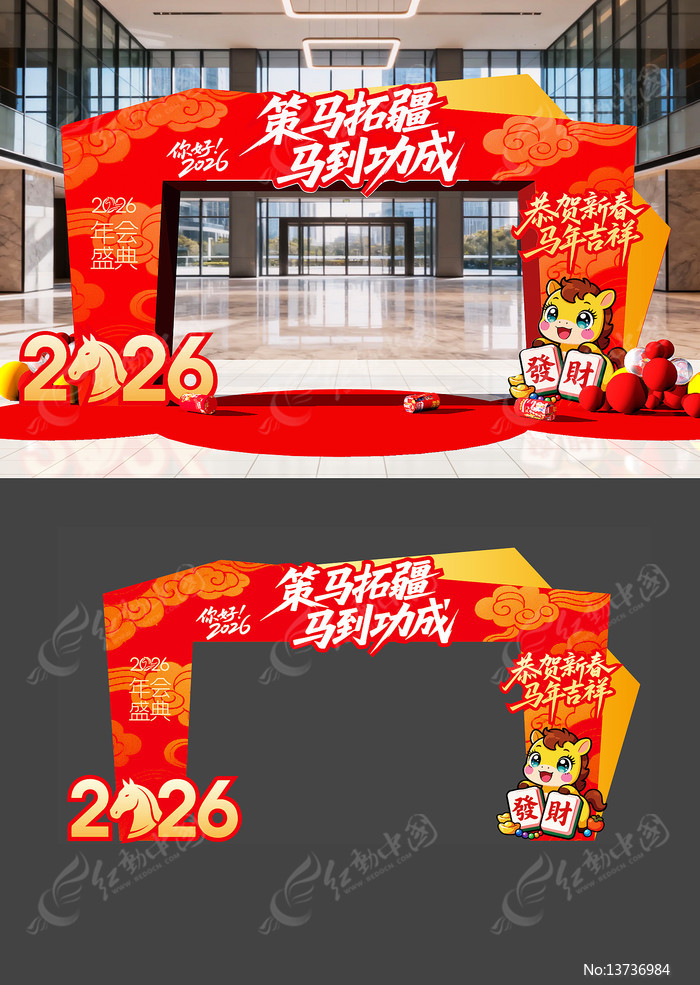 红动中国提供原创原创新年年会拱门美陈下载,作品以春节为主题而设计,可作为春节拱门,春节美陈,马年拱门,年会拱门,年货大街等主题图片使用,原创新年年会拱门美陈,编号13736984,格式AI,尺寸500x200毫米,大小81.89 MB,欢迎会员进行下载。