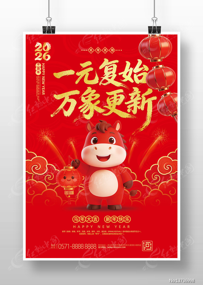 红动中国提供原创红色喜庆2026马年元旦新年宣传海报设计下载,作品以2026年背景为主题而设计,可作为2026年背景,2026年春节,2026年海报,2026年新春,2026马年等主题图片使用,红色喜庆2026马年元旦新年宣传海报设计,编号13736998,格式PSD,尺寸450x300毫米,大小66.56 MB,欢迎会员进行下载。