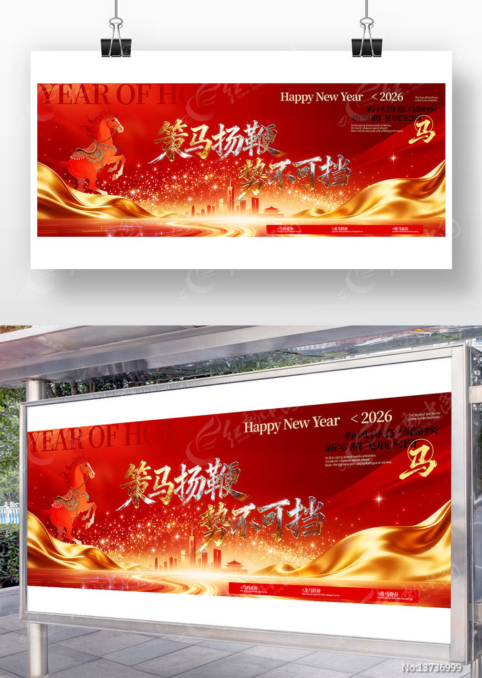 红动中国提供原创策马扬鞭马年新年海报下载,作品以新年为主题而设计,可作为马年海报,新年海报,2026,拜年,贺岁等主题图片使用,策马扬鞭马年新年海报,编号13736999,格式PSD,尺寸300x800毫米,大小121.8 MB,欢迎会员进行下载。