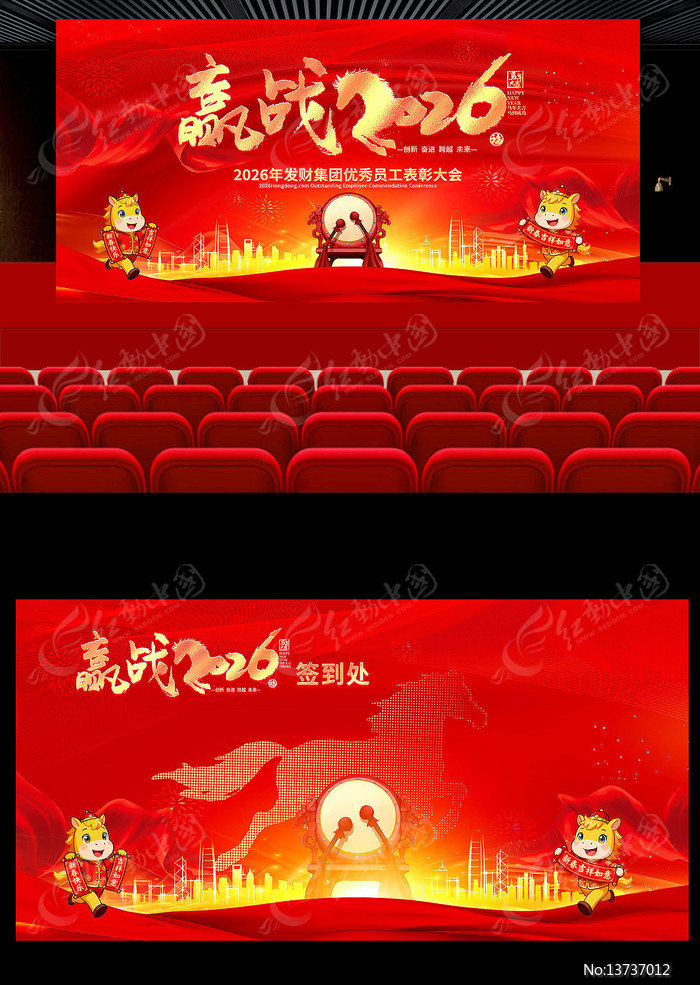 当前位置:设计网站>平面广告>展板>节日节气>赢战2026马年企业年会背景签到处展板赢战2026马年企业年会背景签到处展板