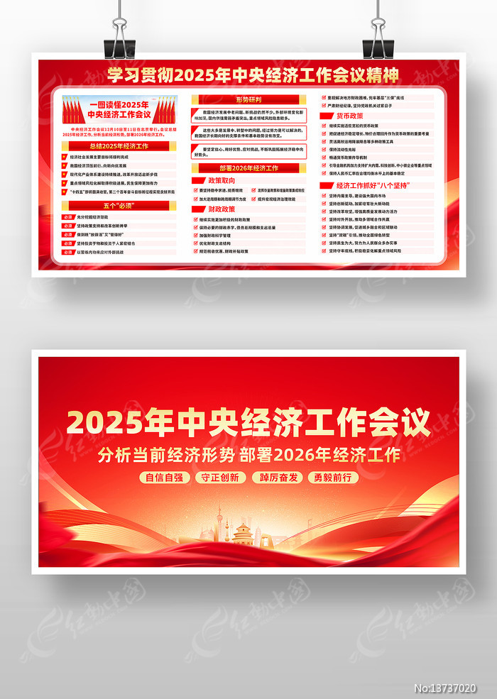 红动中国提供原创2025年中央经济工作会议图片下载,作品以经济工作会议为主题而设计,可作为学习中央经济工作会议,中央经济工作会议精神,经济工作会议展板,政策取向货币政策,2026年经济工作等主题图片使用,2025年中央经济工作会议图片,编号13737020,格式CDR,尺寸2400x1200毫米,大小20.39 MB,欢迎会员进行下载。