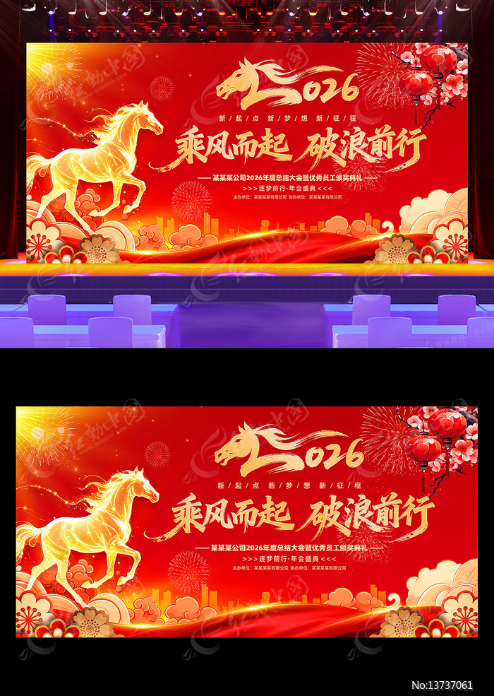 当前位置:设计网站>平面广告>展板>节日节气>2026年马年年会公司晚会舞台背景展板2026年马年年会公司晚会舞台背景展板