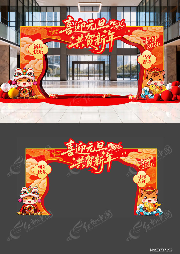 红动中国提供原创原创春节元旦拱门龙门架下载,作品以春节为主题而设计,可作为春节拱门,春节门头,马年拱门,马年门头,年货拱门等主题图片使用,原创春节元旦拱门龙门架,编号13737192,格式AI,尺寸500x200毫米,大小109.87 MB,欢迎会员进行下载。