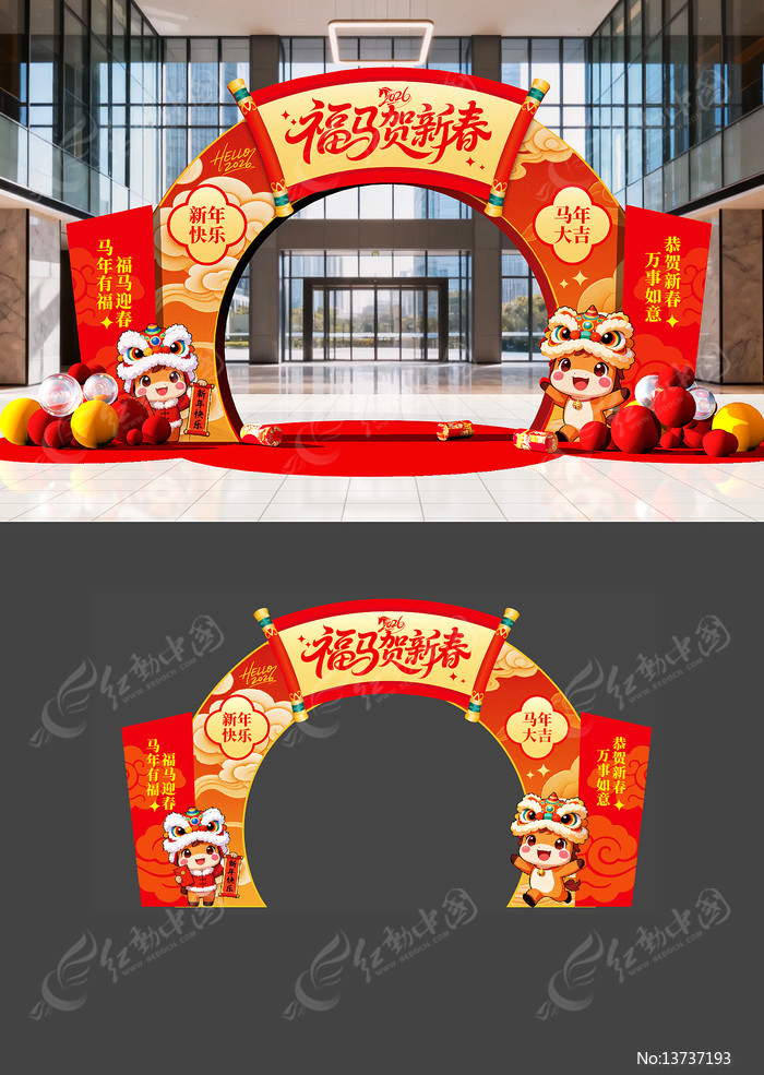 红动中国提供原创原创新年春节拱门下载,作品以春节为主题而设计,可作为春节拱门,春节门头,马年拱门,马年门头,年货拱门等主题图片使用,原创新年春节拱门,编号13737193,格式AI,尺寸500x200毫米,大小106.37 MB,欢迎会员进行下载。