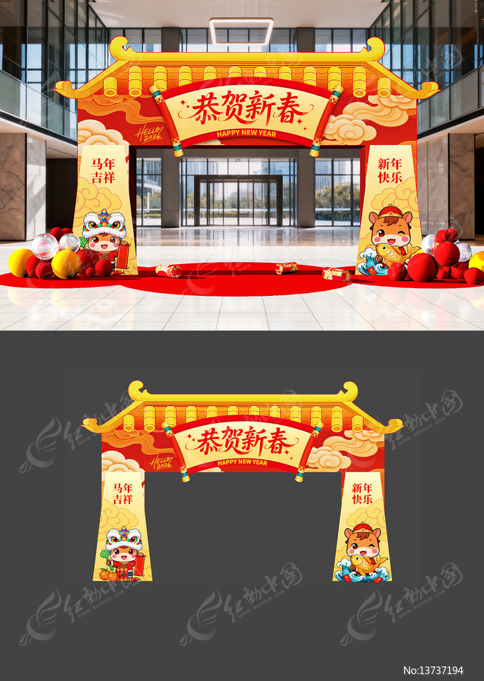 红动中国提供原创原创恭贺新春春节拱门下载,作品以春节为主题而设计,可作为春节拱门,春节门头,马年拱门,马年门头,年货拱门等主题图片使用,原创恭贺新春春节拱门,编号13737194,格式AI,尺寸500x200毫米,大小122.68 MB,欢迎会员进行下载。