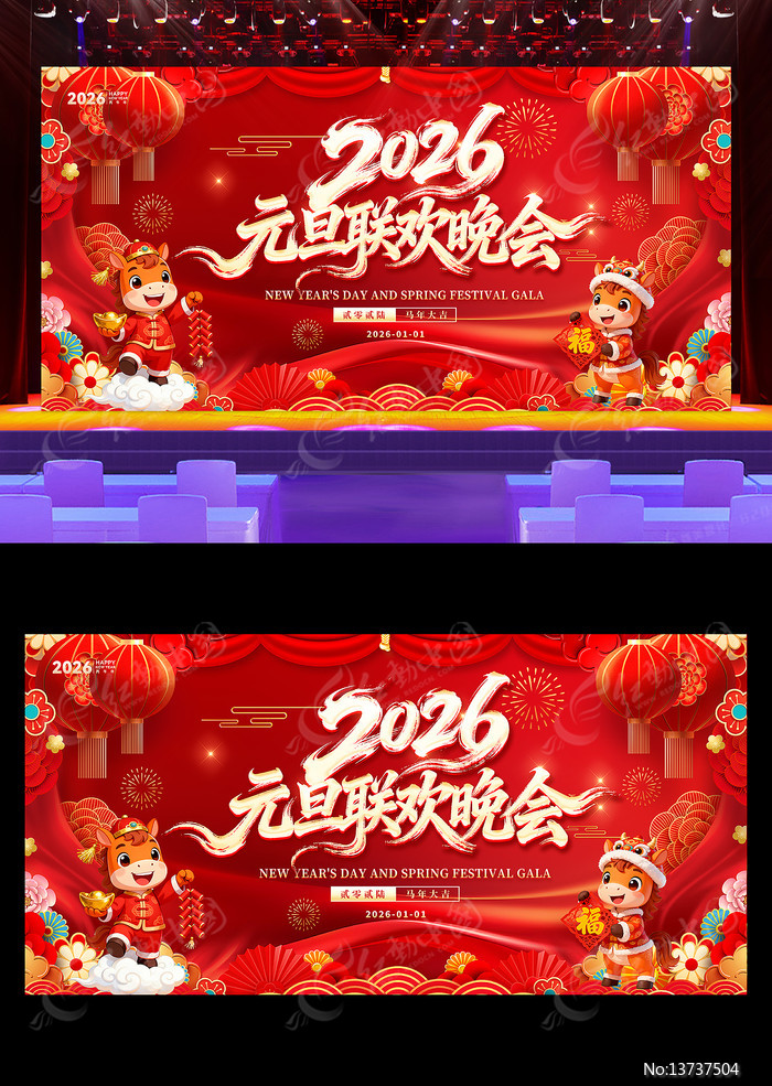 红动中国提供原创庆元旦迎新年2026元旦晚会舞台背景展板下载,作品以元旦节背景为主题而设计,可作为2026年元旦,元旦节背景,2026年会,欢度元旦,马年海报等主题图片使用,庆元旦迎新年2026元旦晚会舞台背景展板,编号13737504,格式PSD,尺寸1200x600毫米,大小105.81 MB,欢迎会员进行下载。