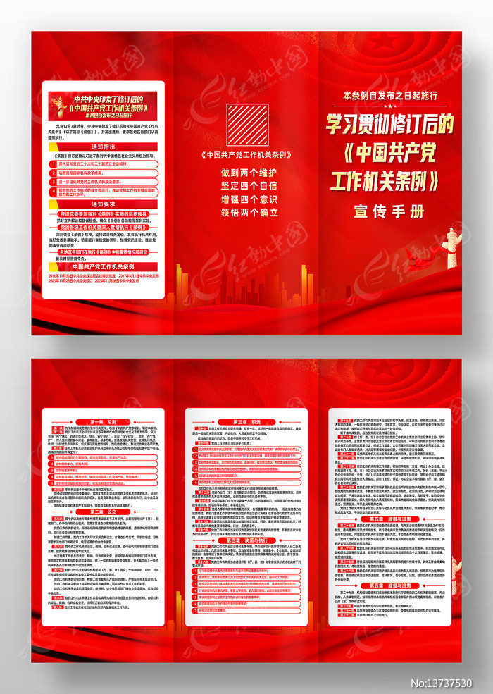 红动中国提供原创修订后的中国共产党工作机关条例三折页下载,作品以中国共产党工作机关条例为主题而设计,可作为中国共产党工作机关条例,工作机关条例,中国共产党,党建文化,党建宣传等主题图片使用,修订后的中国共产党工作机关条例三折页,编号13737530,格式PSD,尺寸297x210毫米,大小34.24 MB,欢迎会员进行下载。