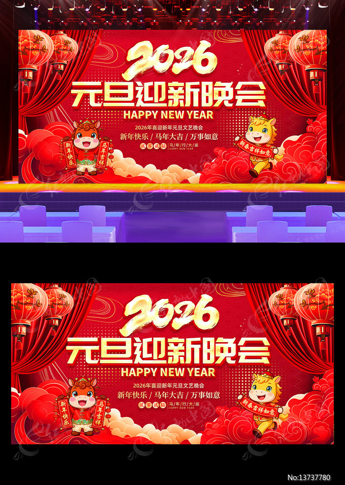 红动中国提供原创2026马年迎新晚会新年晚会舞台背景展板下载,作品以马年背景为主题而设计,可作为舞台背景企,跨年晚会,马年背景,马年大吉,马年海报等主题图片使用,2026马年迎新晚会新年晚会舞台背景展板,编号13737780,格式PSD,尺寸500x250毫米,大小58.56 MB,欢迎会员进行下载。