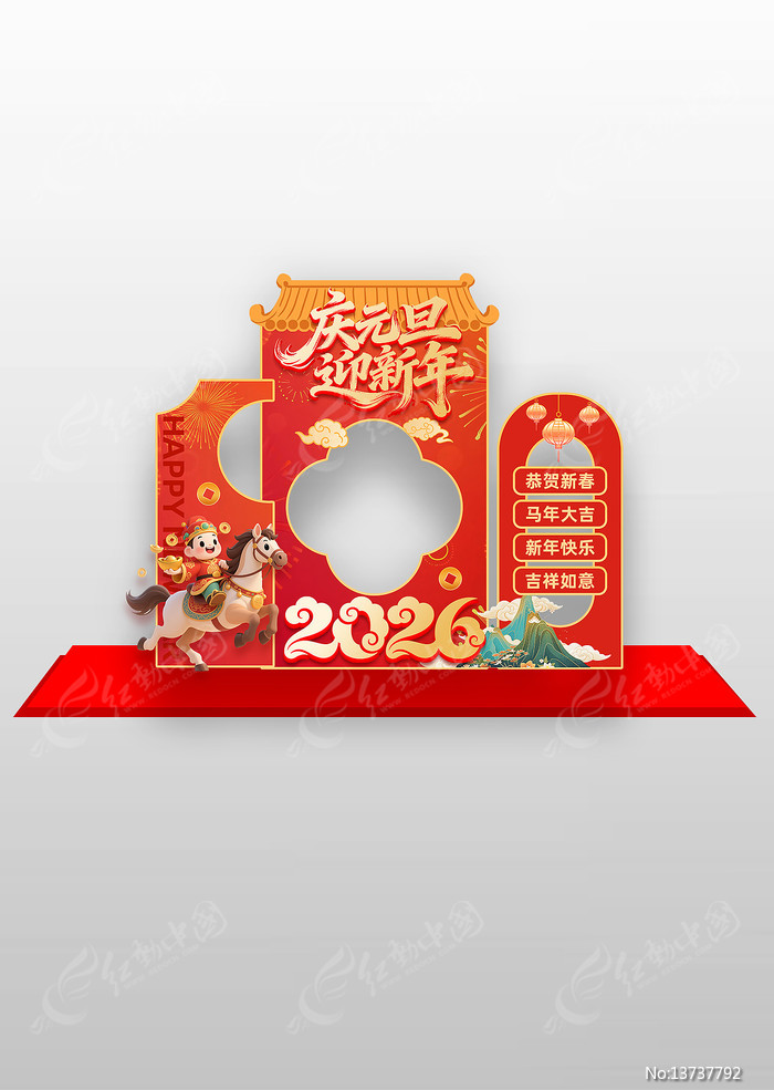 红动中国提供原创庆元旦迎新年2026马年拍照框美陈下载,作品以元旦为主题而设计,可作为马年开门红,元旦拍照框,2026马年,2026年会,2026新年等主题图片使用,庆元旦迎新年2026马年拍照框美陈,编号13737792,格式PSD,尺寸450x300毫米,大小54.41 MB,欢迎会员进行下载。