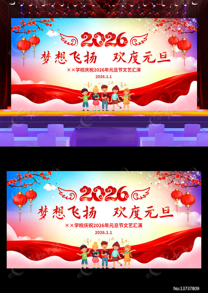 当前位置:设计网站>平面广告>展板>节日节气>2026年学校元旦联欢晚会舞台背景展板2026年学校元旦联欢晚会舞台背景展板