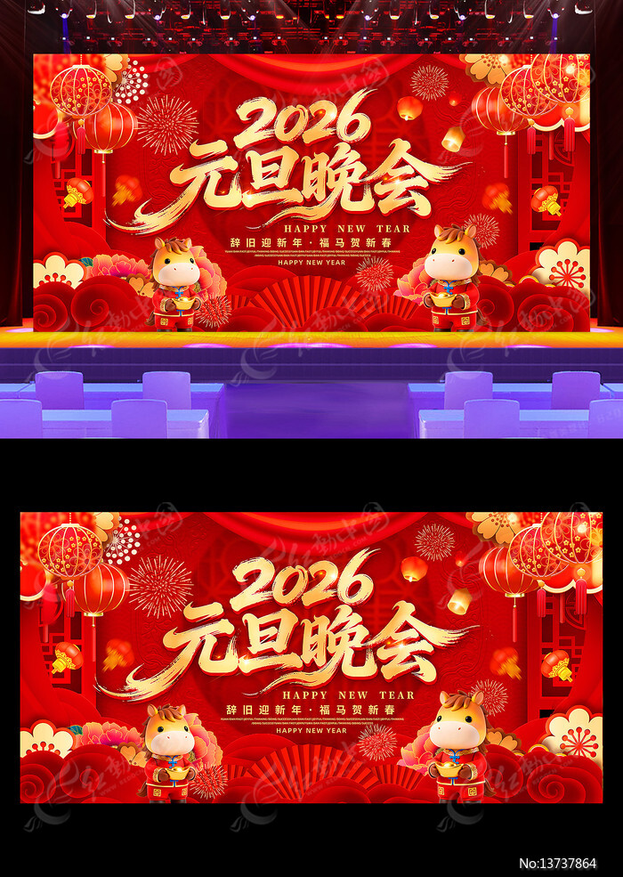 红动中国提供原创2026元旦联欢晚会新年晚会舞台背景设计下载,作品以元旦年会背景为主题而设计,可作为2026跨年晚会,元旦年会背景,马年背景,马年大吉,马年晚会等主题图片使用,2026元旦联欢晚会新年晚会舞台背景设计,编号13737864,格式PSD,尺寸500x250毫米,大小102.91 MB,欢迎会员进行下载。