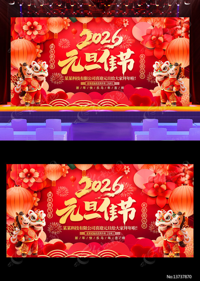 红动中国提供原创喜庆2026年迎元旦新年晚会舞台背景下载,作品以元旦年会背景为主题而设计,可作为2026跨年晚会,元旦年会背景,马年背景,马年大吉,马年晚会等主题图片使用,喜庆2026年迎元旦新年晚会舞台背景,编号13737870,格式PSD,尺寸500x250毫米,大小88.15 MB,欢迎会员进行下载。