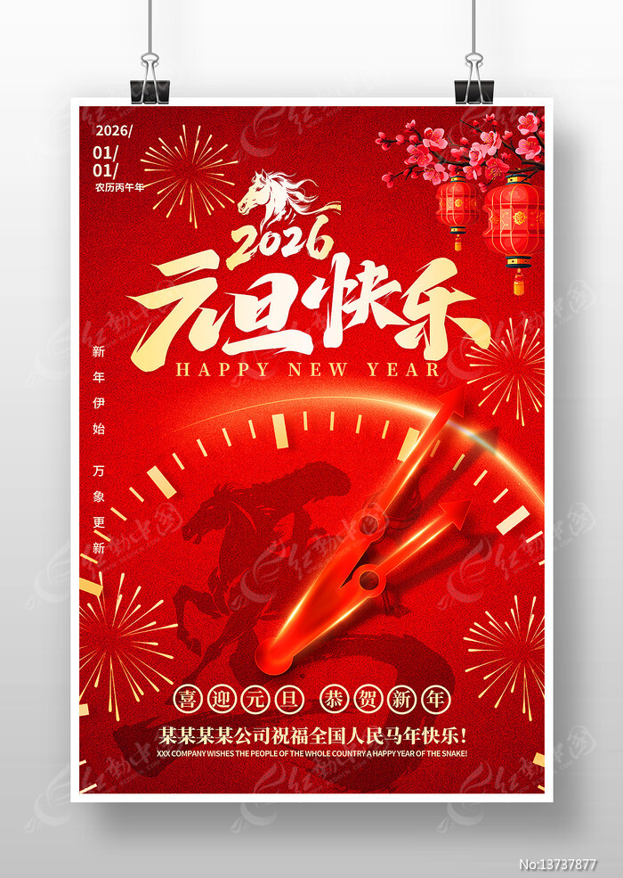 红动中国提供原创2026马年新春新年元旦快乐海报设计下载,作品以元旦新年为主题而设计,可作为元旦新年海报,2026年马年,2026新春,2026元旦,欢度元旦等主题图片使用,2026马年新春新年元旦快乐海报设计,编号13737877,格式PSD,尺寸300x450毫米,大小98.66 MB,欢迎会员进行下载。