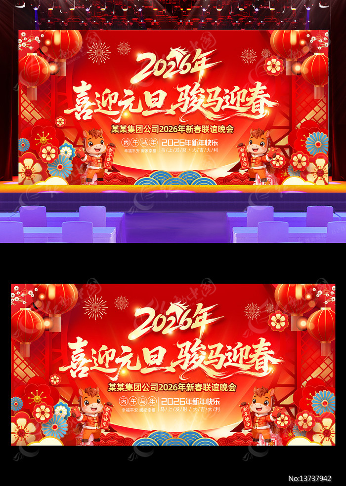 红动中国提供原创喜庆2026马年企业年会晚会舞台背景下载,作品以春节晚会为主题而设计,可作为春节联欢晚会,公司年会背景,会议舞台背景,年会舞台背景,企业年会背景等主题图片使用,喜庆2026马年企业年会晚会舞台背景,编号13737942,格式PSD,尺寸600x300毫米,大小66.7 MB,欢迎会员进行下载。