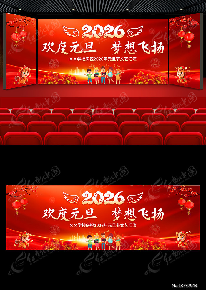 红动中国提供原创欢度元旦梦想飞扬2026年元旦晚会背景板下载,作品以元旦联欢晚会为主题而设计,可作为幼儿园元旦晚会,小学元旦晚会,校园元旦晚会,学校元旦晚会,元旦联欢晚会等主题图片使用,欢度元旦梦想飞扬2026年元旦晚会背景板,编号13737943,格式PSD,尺寸900x300毫米,大小148.62 MB,欢迎会员进行下载。