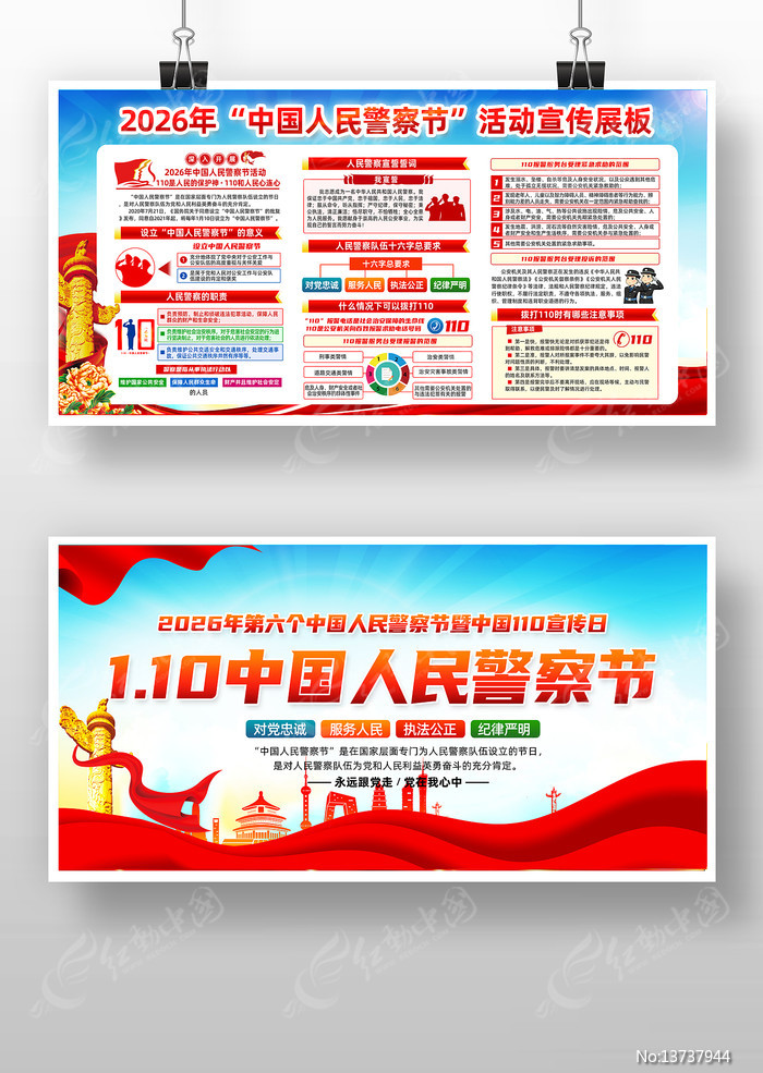 红动中国提供原创2026年110宣传日第6个警察节展板下载,作品以警察节为主题而设计,可作为警察节宣传栏中国人民警察,警察节背景,警察节海报,警察节宣传,警察节展板等主题图片使用,2026年110宣传日第6个警察节展板,编号13737944,格式PSD,尺寸2400x1200毫米,大小79.95 MB,欢迎会员进行下载。