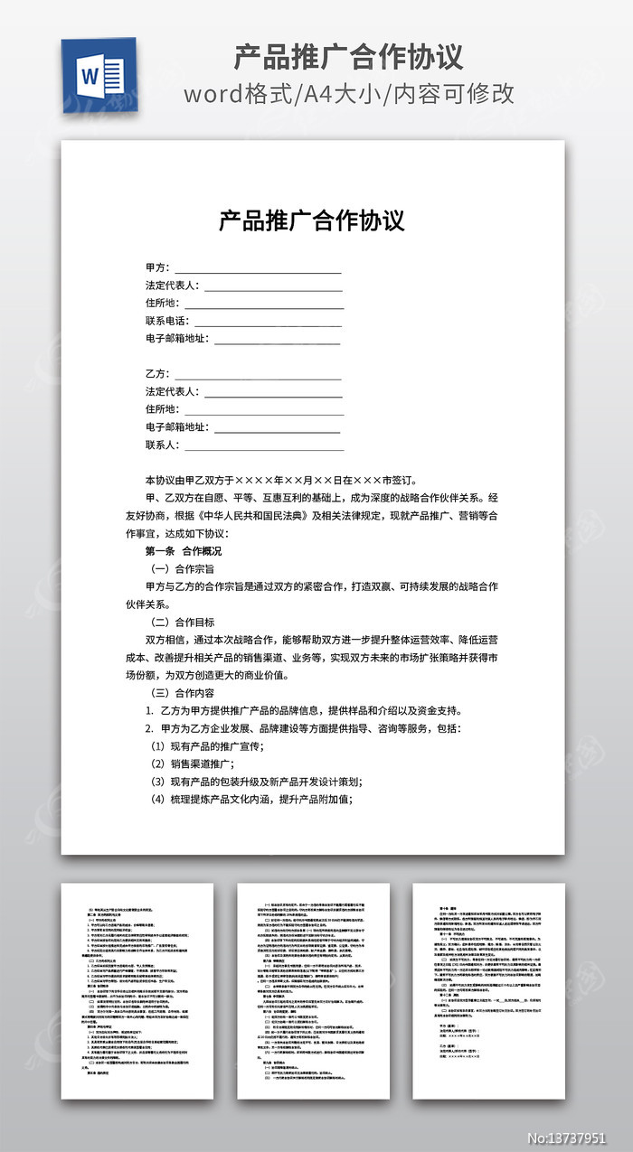 当前位置:素材网站>办公文档>WORD>合同范本>产品推广合作协议产品推广合作协议
