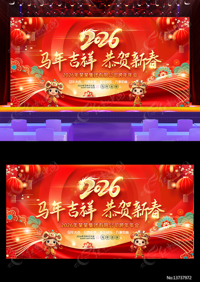 红动中国提供原创大气2026马年年会背景晚会舞台背景图下载,作品以2026马年晚会为主题而设计,可作为2026春节背景,2026春节晚会,2026马年背景,2026马年晚会,2026新年背景等主题图片使用,大气2026马年年会背景晚会舞台背景图,编号13737972,格式PSD,尺寸600x300毫米,大小68.6 MB,欢迎会员进行下载。