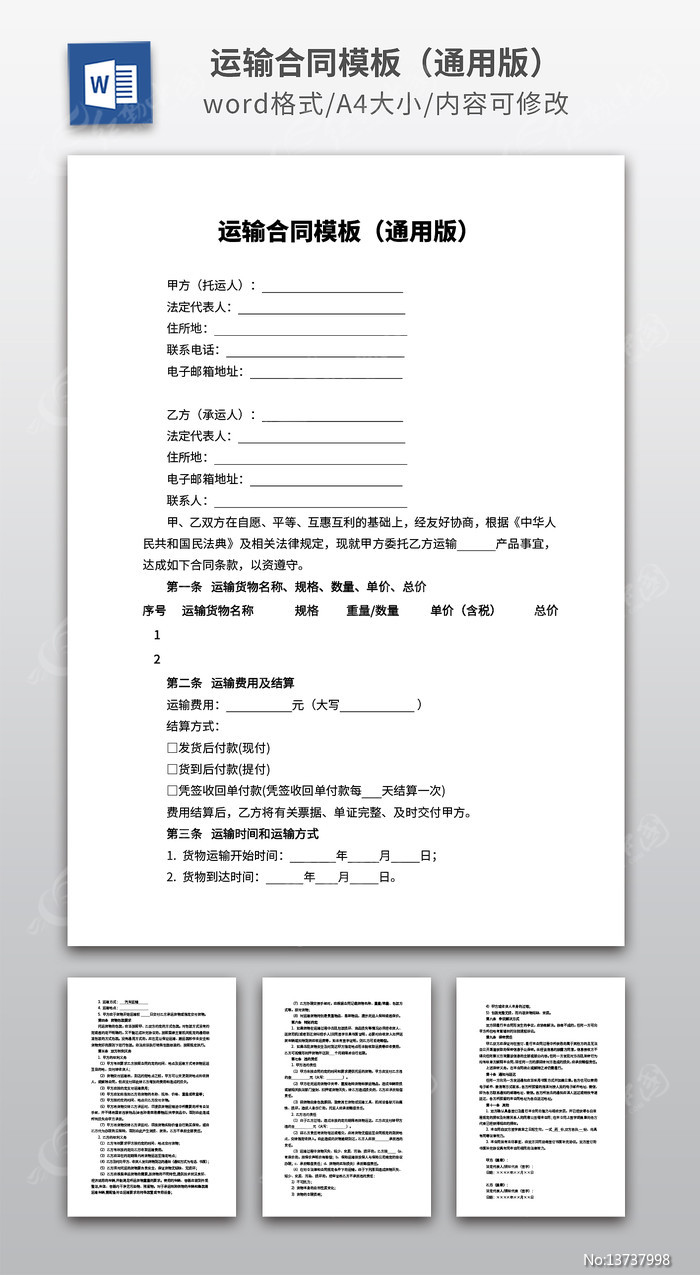 当前位置:素材网站>办公文档>WORD>合同范本>运输合同模板运输合同模板