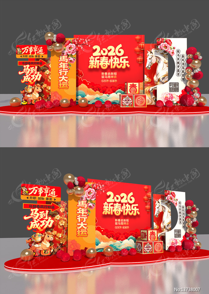 红动中国提供原创2026新春快乐美陈氛围拍照下载,作品以2026新年为主题而设计,可作为2026春节美陈,2026马年美陈,2026新年美陈,马年美陈布置,马年商场美陈等主题图片使用,2026新春快乐美陈氛围拍照,编号13738007,格式CDR,尺寸600x300毫米,大小399.41 MB,欢迎会员进行下载。