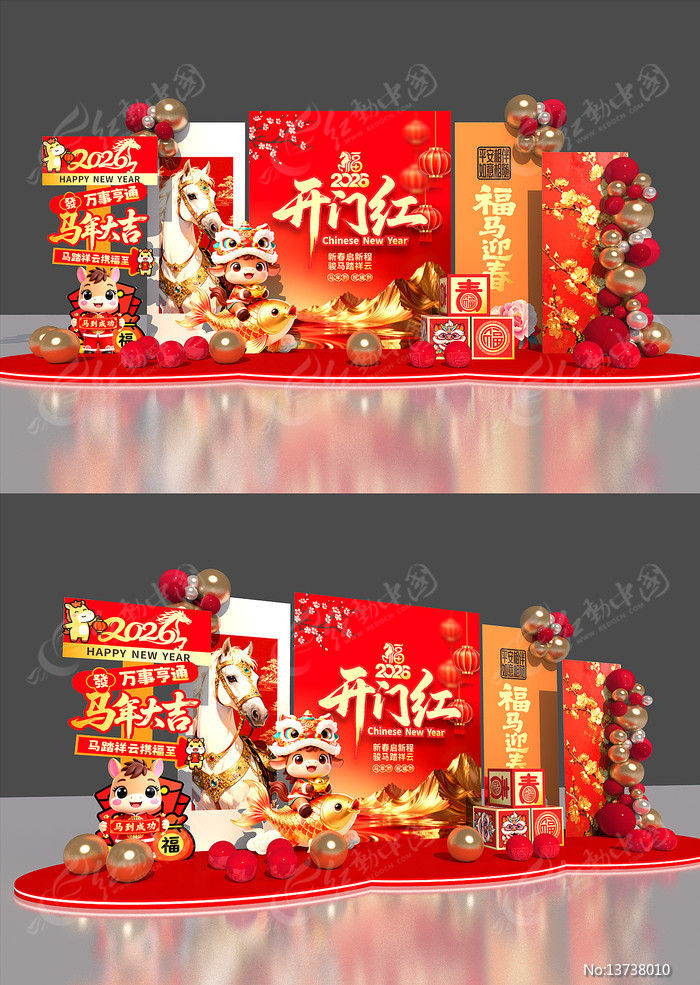 红动中国提供原创开门红2026美陈布置设计下载,作品以2026新年为主题而设计,可作为2026春节美陈,2026马年美陈,2026新年美陈,马年美陈布置,马年商场美陈等主题图片使用,开门红2026美陈布置设计,编号13738010,格式CDR,尺寸600x300毫米,大小346.99 MB,欢迎会员进行下载。