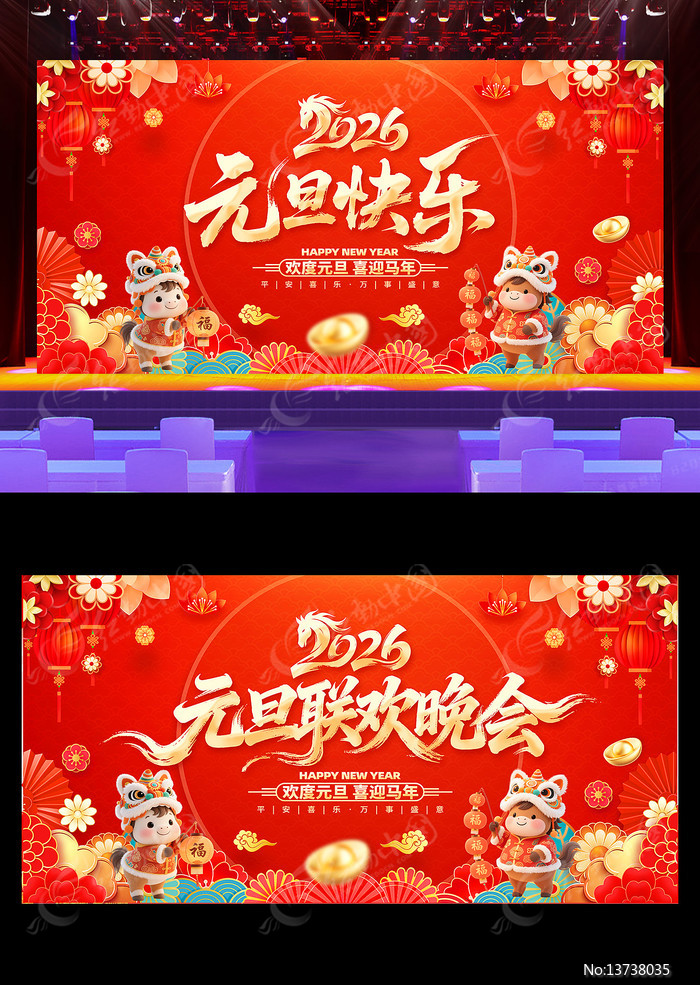 红动中国提供原创2026马年元旦联欢晚会舞台背景展板下载,作品以新年年会背景为主题而设计,可作为新年年会背景,2026马年,跨年晚会,马年背景,马年大吉等主题图片使用,2026马年元旦联欢晚会舞台背景展板,编号13738035,格式PSD,尺寸600x300毫米,大小58.33 MB,欢迎会员进行下载。