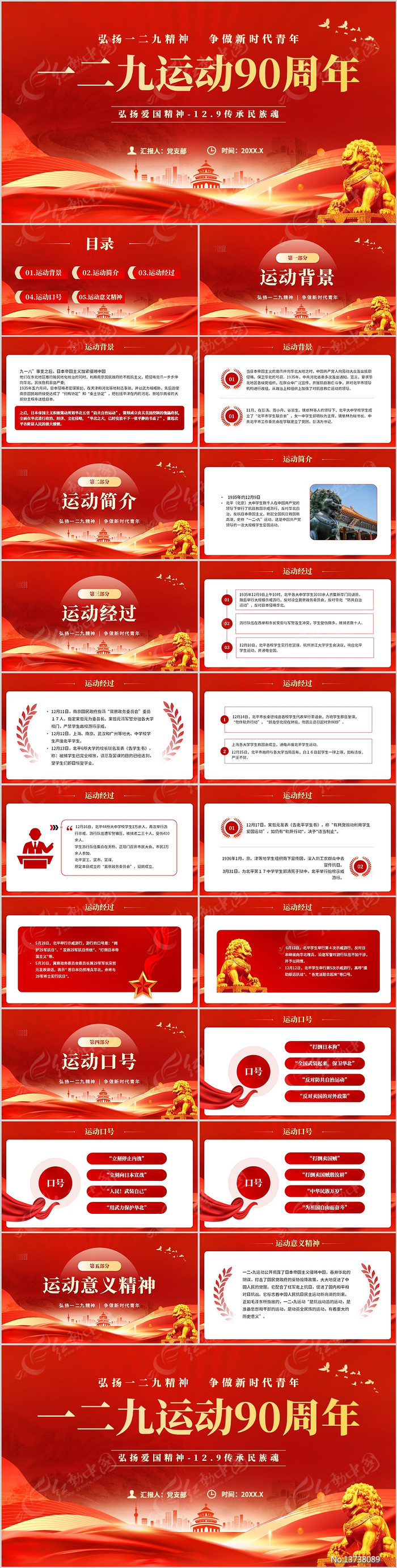 红动中国提供原创纪念一二九运动90周年PPT模板下载,作品以一二九运动为主题而设计,可作为新时代青年,一二九运动,爱国精神,抗日战争,90周年等主题PPT使用,纪念一二九运动90周年PPT模板编号13738089,格式pptx,大小2.87 MB,欢迎会员进行下载。