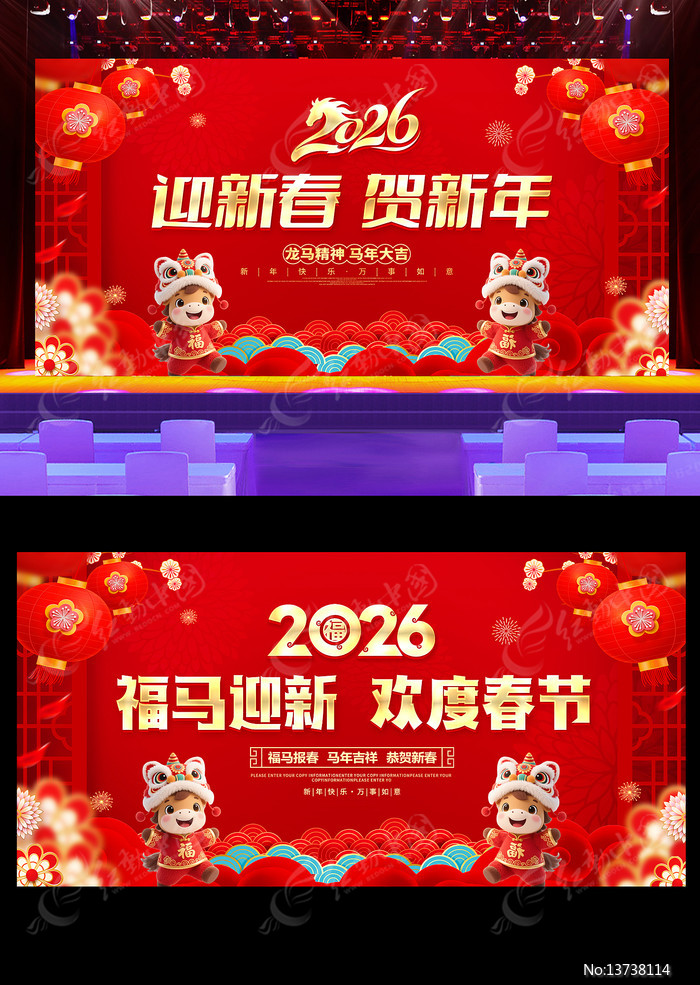 红动中国提供原创红色喜庆2026年马年新年春节展板下载,作品以年会背景为主题而设计,可作为跨年晚会,马年背景,马年大吉,马年海报,马年晚会等主题图片使用,红色喜庆2026年马年新年春节展板,编号13738114,格式PSD,尺寸1200x600毫米,大小112.08 MB,欢迎会员进行下载。