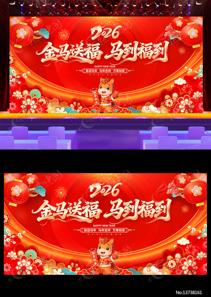 当前位置:设计网站>平面广告>展板>节日节气>2026新年年会背景马年春节展板2026新年年会背景马年春节展板