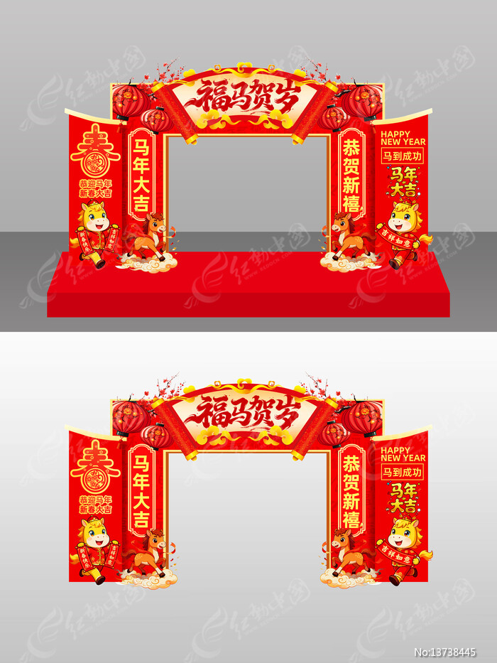 红动中国提供原创2026马年大吉元旦新年春节拱门美陈下载,作品以开门红为主题而设计,可作为2026年马年元旦海报,元旦新年海报,2026新春,2026元旦,欢度元旦等主题图片使用,2026马年大吉元旦新年春节拱门美陈,编号13738445,格式PSD,尺寸300x450毫米,大小66.04 MB,欢迎会员进行下载。