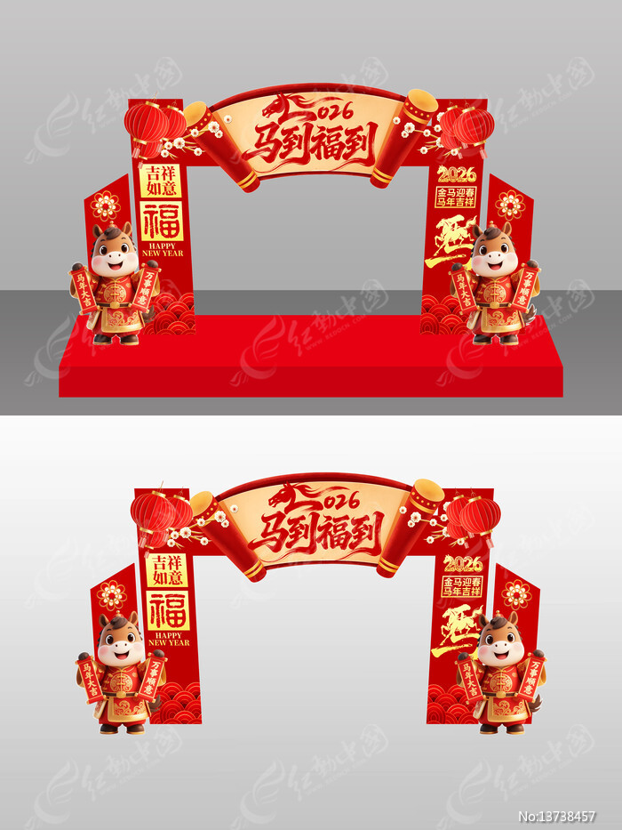 红动中国提供原创马到福到2026马年新春节拱门美陈下载,作品以开门红为主题而设计,可作为2026开门红,2026照相框,开门红美陈,马年开门红,2026马年等主题图片使用,马到福到2026马年新春节拱门美陈,编号13738457,格式PSD,尺寸300x450毫米,大小49.94 MB,欢迎会员进行下载。