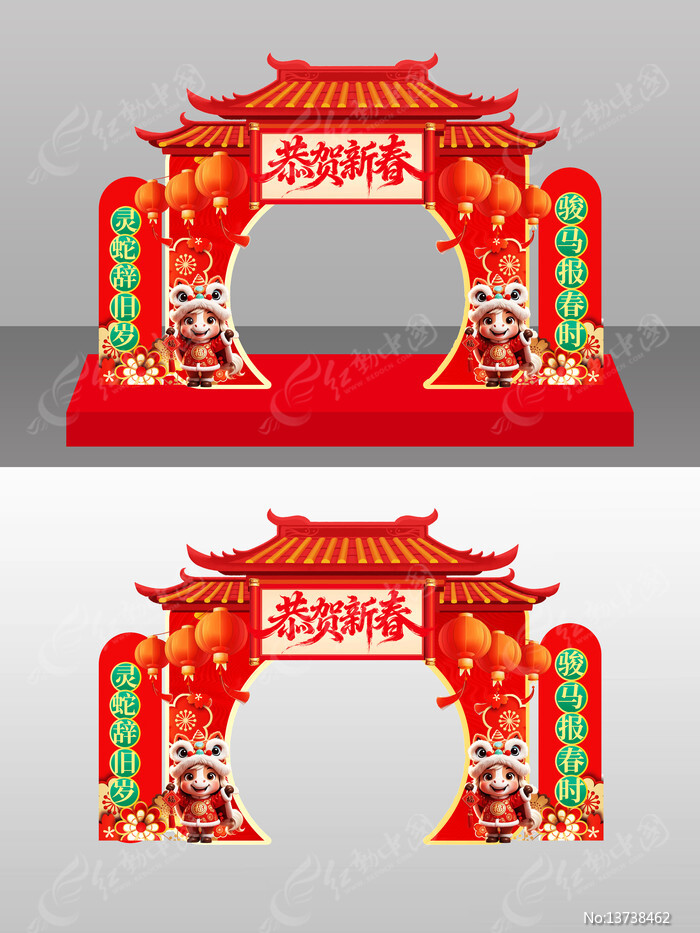 红动中国提供原创2026马年恭贺新春春节拱门美陈下载,作品以开门红为主题而设计,可作为2026开门红,2026照相框,开门红美陈,马年开门红,2026马年等主题图片使用,2026马年恭贺新春春节拱门美陈,编号13738462,格式PSD,尺寸300x450毫米,大小89.46 MB,欢迎会员进行下载。