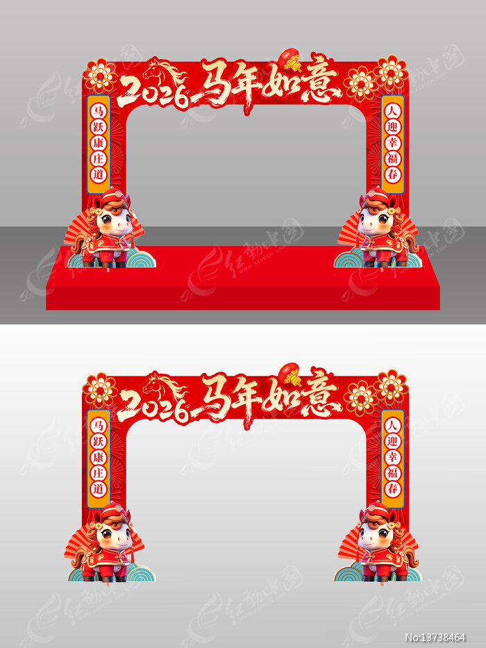红动中国提供原创2026年马年如意新年春节美陈拱门下载,作品以开门红为主题而设计,可作为2026开门红,2026照相框,开门红美陈,马年开门红,2026马年等主题图片使用,2026年马年如意新年春节美陈拱门,编号13738464,格式PSD,尺寸300x450毫米,大小70.51 MB,欢迎会员进行下载。